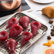 Introduce exceptional craftsmanship and lasting performance to the kitchen with the Hestan Provisions OvenBond Stainless Steel Quarter Sheet Pan and Rack Set. The quarter sheet pan is crafted from triple-bonded clad stainless steel with a responsive aluminum core designed to emit heat evenly, producing beautifully browned goods and perfectly roasted foods, while the roasting and cooling rack is crafted from stainless steel.