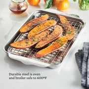 UNRIVALED DURABILITY - Heavy-duty stainless steel pan and rack are ultra-durable for a lifetime of oven roasting and baking