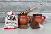 Experience authentic Mexican Hot Chocolate with this set of 12 handmade clay mugs (6 sets of 2). Crafted in Mexico using traditional techniques, each mug is uniquely shaped with a glazed interior and lip to reduce condensation. The natural clay insulates drinks, keeping them hot or cold longer. Perfect for iced coffee or cozy hot chocolate. Approx. 14 oz capacity, 4" x 4" tall. Handwash only. Not dishwasher safe. Lead-free.