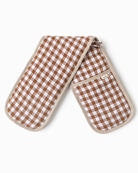 The Double Oven Mitts are a stylish and practical kitchen essential, designed to protect your hands and arms from heat while handling hot pots or baking trays. Made as part of our zero-waste program, they utilize excess linen from production to minimize fabric waste and environmental impact. Available in various colors, these mitts are both functional and aesthetically pleasing, making them a perfect fit for any kitchen interior. A must-have for safe and sustainable cooking!