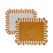 Misette | Jardin Embroidered Linen Scalloped Stripe Double-Sided Placemats in Amber, Set of 4