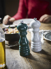 Meet your new table star: the Peugeot Paris u'Select salt mill in creamy ivory lacquer. At 7 inches tall, its PEFC-certified French beech body offers a soft, modern gloss that shines solo or alongside Peugeot's slate, pink, or red mills. We chose this gem for Peugeot's innovative Zirlion zirconia mechanism. It grinds salt from whisper-fine powder perfect for delicate finishing touches to bold 6mm crystals that pack a punch. Twist the patented u'Select base to one of six settings or dial in infinite options for just the right grind.